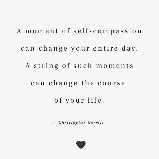 One of my favorite writers on the subject of self compassion is Christopher Germer, Ph.D. He defines compassion as a way of accepting the self instead of what is happening to the self. Self compassion is an accepting and honouring of our feelings. It’s giving ourselves permission to let all the different feelings rise and fall, come and go, with gentleness and love.